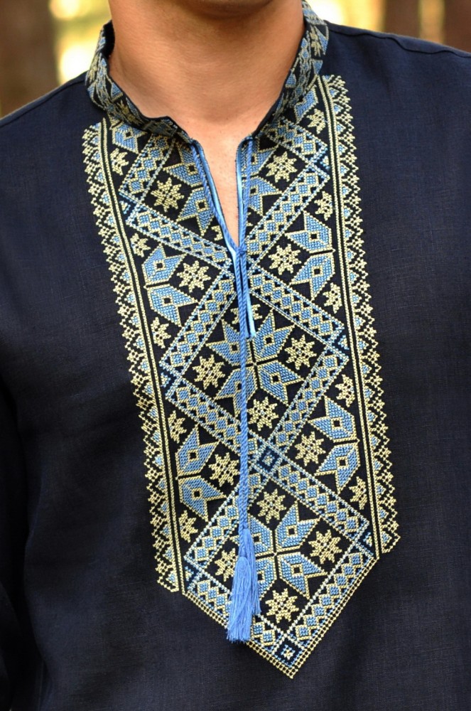 Вишита чоловіча сорочка з довгим рукавом і коміром-стійкою.